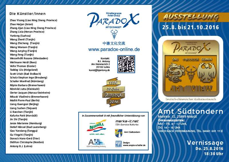 Die Künstlergruppe PARADOX wurde in Deutschland auf Initiative von B.J. Antony im Jahr 1996 als ein freier Zusammenschluss bildender und darstellender Künstler gegründet, um gemeinsam Ausstellungen und umfangreiche Kunstprojekte durchzuführen. Insgesamt sind unter dem Dach von PARADOX mehr als 100 internationale Künstler organisiert, die ein vielfältiges Spektrum aktueller, zeitgenössischer Kunst repräsentieren. Zur Website
